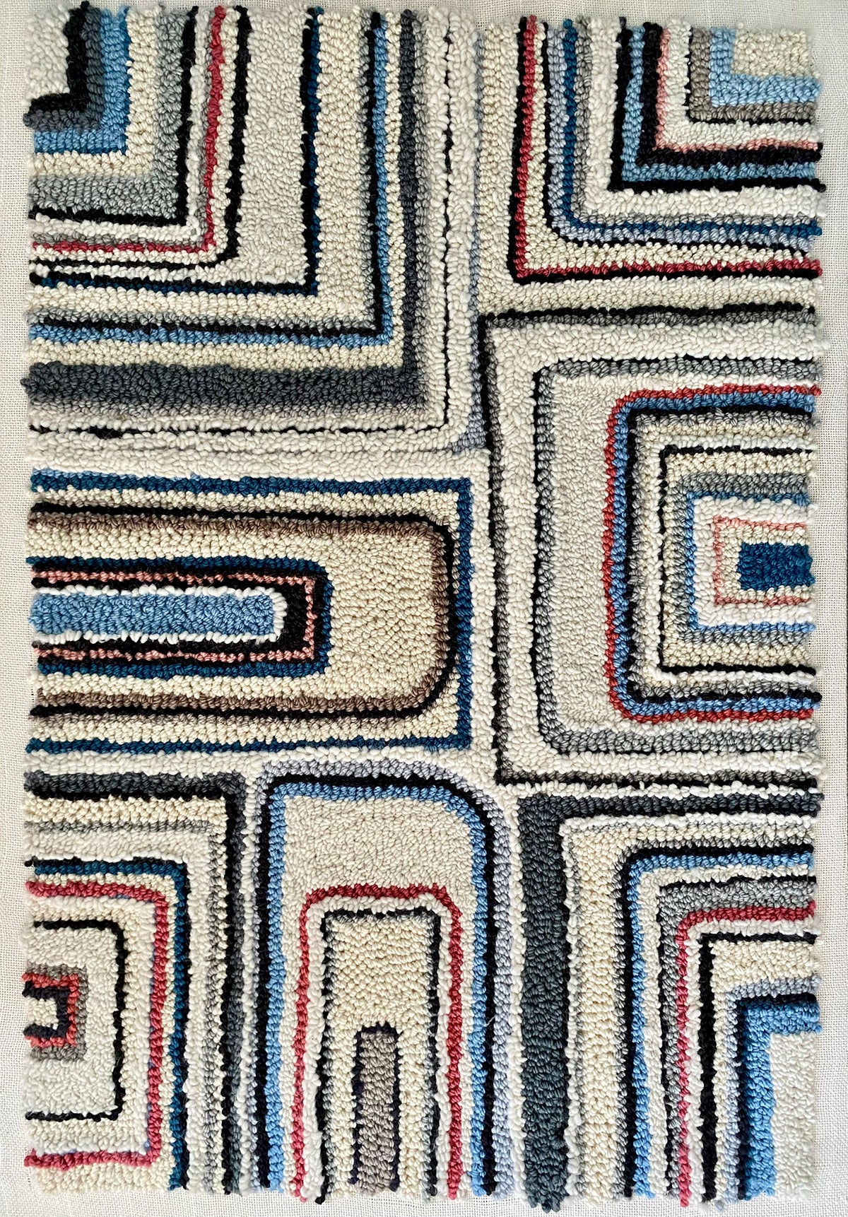 This hand-crafted wool punch needle artwork explores the interplay of texture, movement, and form. With abstract flowing lines and layered surfaces, it evokes a sense of rhythm and depth—inviting the eye to wander across tactile landscapes. Earthy and contemporary, this transforms natural wool into a modern study of line, shape, and dimension.