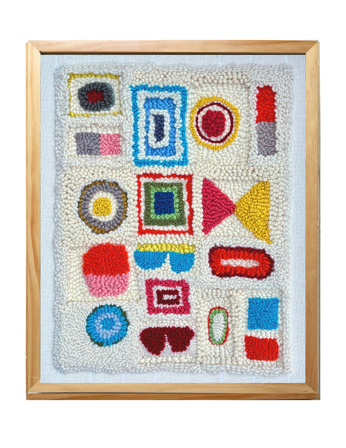 Modern punch needle art made from 100% wool on 100% cotton muslin backing. Each piece measures 16” x 20”