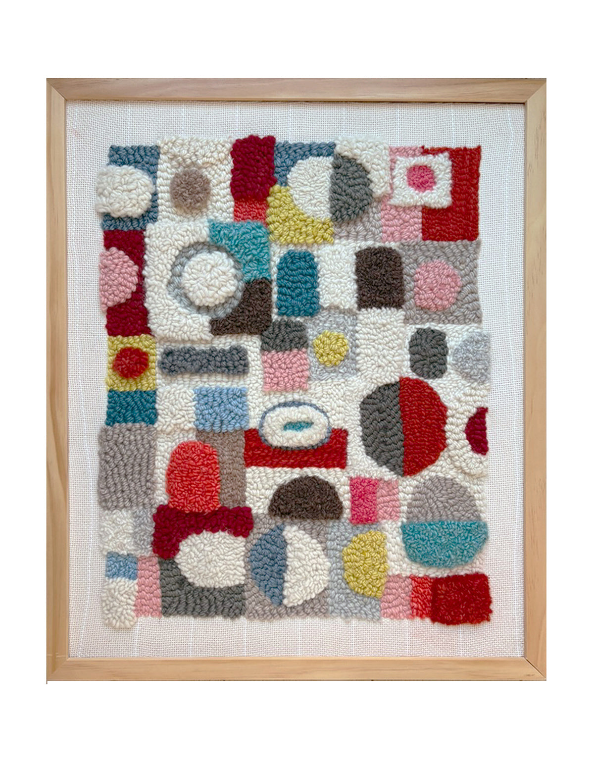 Modern punch needle art made from 100% wool on 100% cotton muslin backing. Each piece measures 16” x 20”